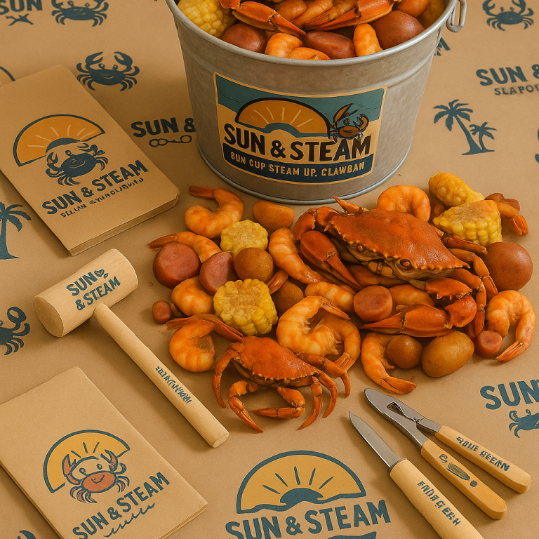 Our single-use steam pots are packed with the freshest seafood, meats, veggies, and homemade seasonings. Simply take home, steam using the easy-to-follow instructions included with your pot, and enjoy!